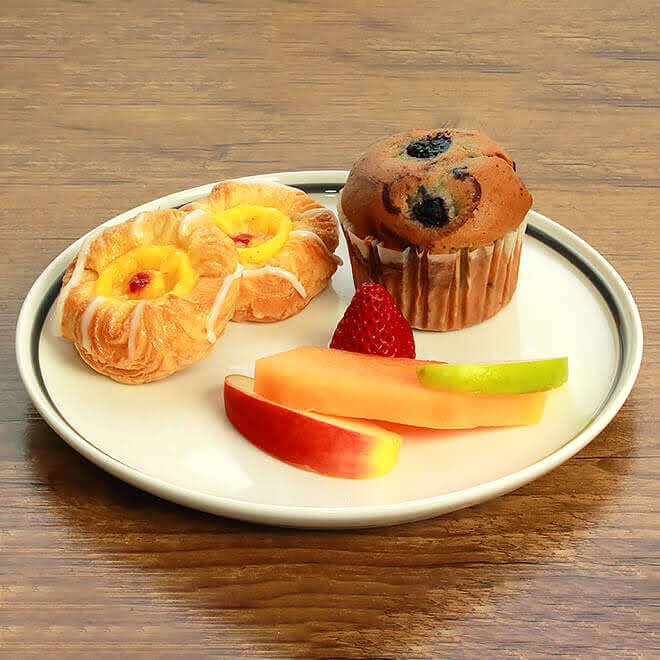 SWEETS: Jam & Custard Danish (V, Nuts), Raspberry Danish (V, Nuts), Blueberry Muffins (V), Chocolate Muffins (V).